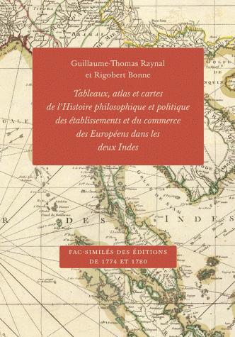 Tableaux, atlas et cartes de l'Histoire philosophique et politique des établissements et du commerce des Européens dans les deux Indes. Reproduction en fac-similé des éditions de 1774 et 1780 Présentation et notes par Andrew Brown ISBN 978-2-84559-060-1, 2010, 365 x 265 mm, 128 pages, 77 illustrations, cartonné, prix €100 Acheter sur AmazonTélécharger un choix des pages des Tableaux, atlas et cartes Télécharger la couverture des Tableaux, atlas et cartes